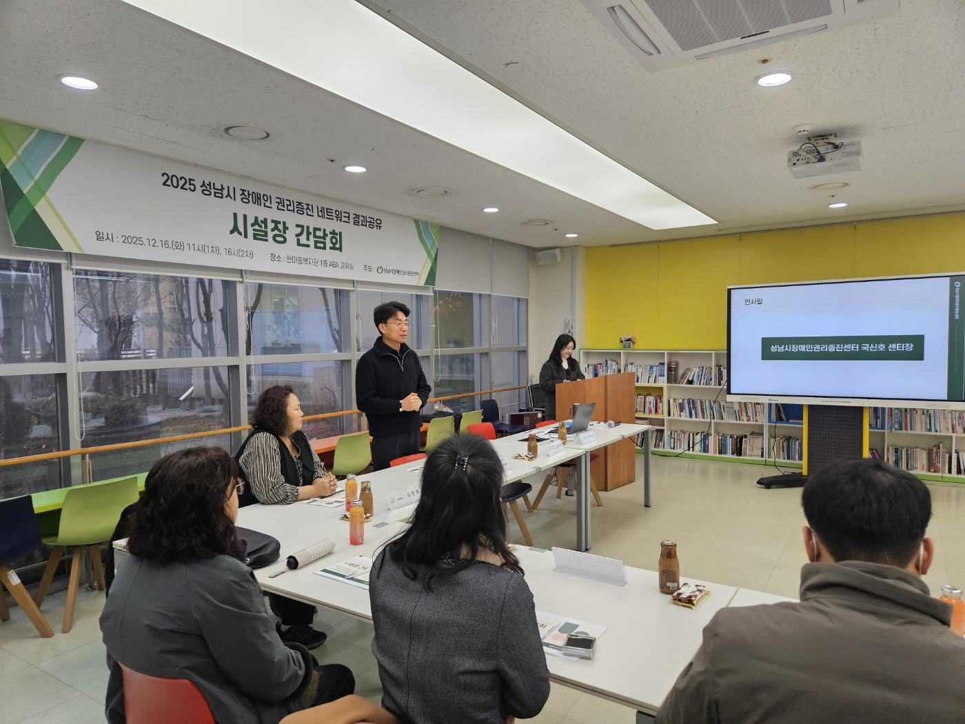 성남시장애인권리증진센터에서는 지난 1년간 진행한 성남시 장애인 권리증진 네트워크 회의의 결과를 공유하고 성남시 장애인 복지 기관 시설장들에게 협력을 제안하고 의견을 청취하기 위해 간담회를 진행하였습니다.